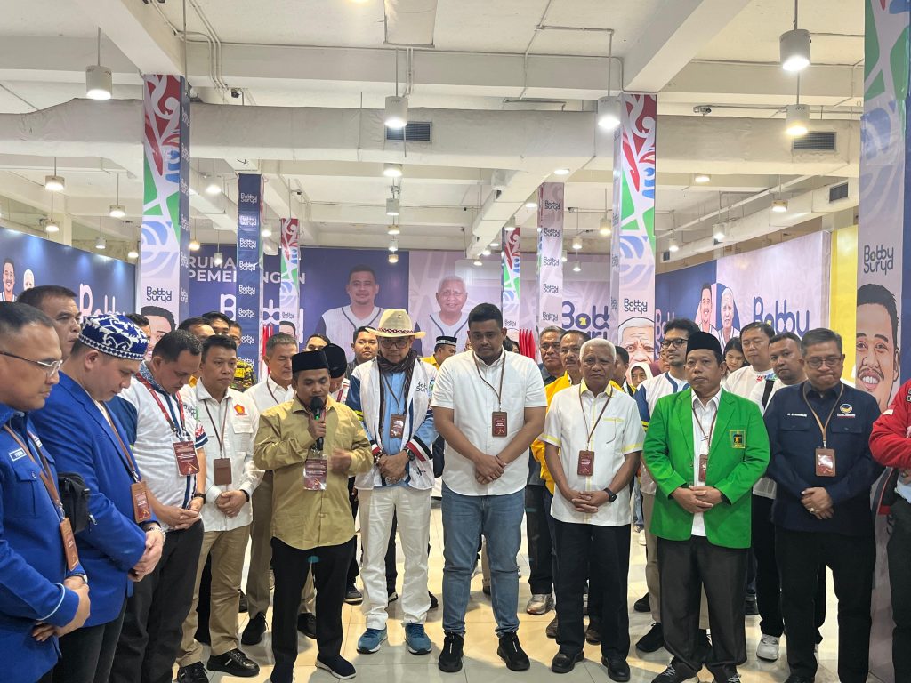Bobby-Surya dan timnya berangkat dari rumah pemenangan, di Jalan Balai Kota. Dipimpin Ketua Tim Pemenangan Bobby-Surya Hinca Pandjaitan, paslon ini diantar seluruh pimpinan partai pendukung dan pengusung beserta relawan.