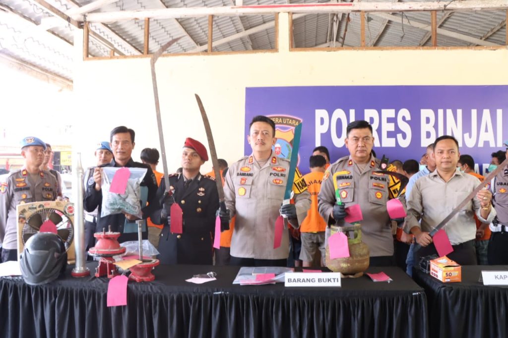 BINJAI | REPUBLIKASUMUT.COM – Kepolisian Resor Binjai memaparkan kasus yang berhasil diungkap dari 20 perkara dengan 23 tersangka, Senin (28/10/2024) siang.