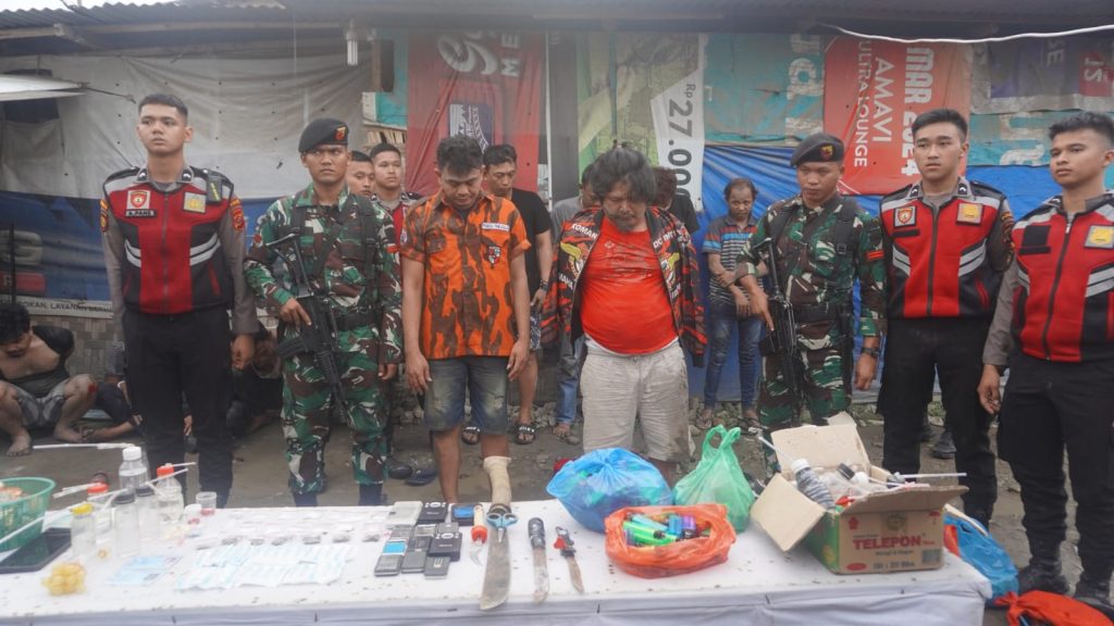 Tim Gabungan Deninteldam I/BB dan Polda Sumut menggerebek Kampung Narkoba di Jalan Jermal 15, Gang Dojo-Gang Kasih, Medan Denai. Hasilnya, 13 pria diduga pengedar Narkoba dan pemakai narkoba diamankan lengkap dengan barang buktinya, Rabu (19/3/2025).